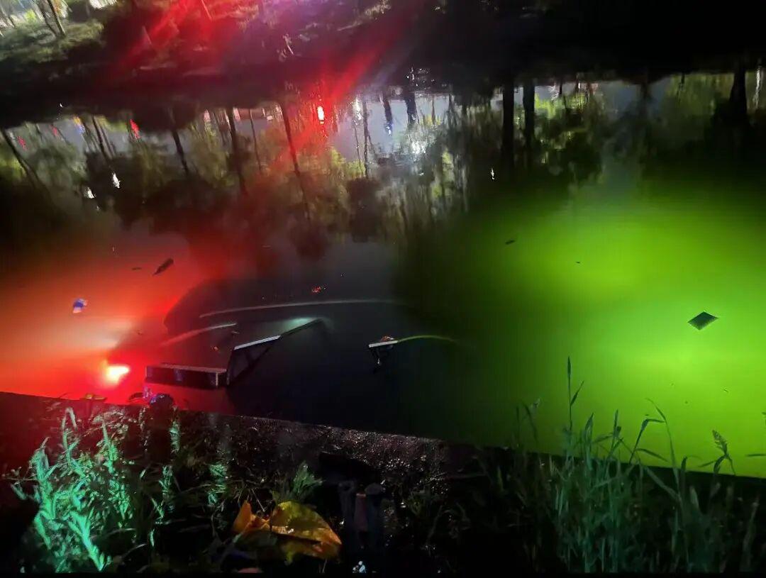 深夜的河道漆黑一片,河水不断涌入车内,救援刻不容缓。